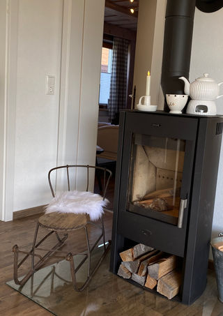 zusätzlich können Sie für eine herrlich gemütliche Wärme mit Holz heizen - so fühlt sich das Allgäu an.